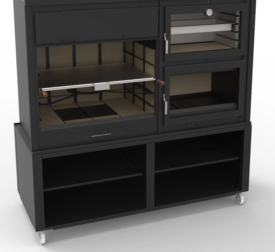 – Parrilla de cocción de Acero Inoxidable tipo Argentina (con varillas en forma de V) y recoge-grasas.