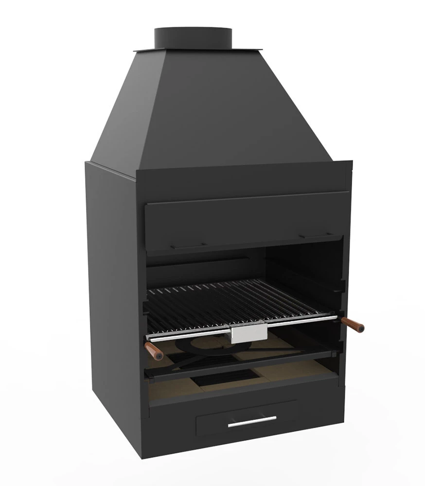 Fabricada con Acero al carbono de 4 mm. y con el interior de ladrillo refractario para poder cocinar y asar con carbón o leña, dándole así un toque de sabor exquisito a su comida.