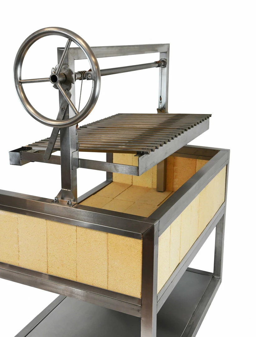 El interior de la Barbacoa Argentina está incrustado con ladrillos refractarios de alta calidad. Los ladrillos producen una excelente radiación de calor para una cocción continua. También evitan que el cuerpo de acero se degrade por el calor extremo de la llama desnuda.