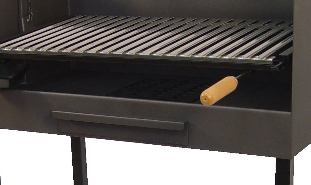 Las barbacoas de Imex El Zorro han sido completamente rediseñadas. Los cambios más relevantes a destacar son: Elegantes ruedas 4×4 para todo tipo de superficie, elevador reversible, manivela extraíble, cajón recoge cenizas reforzado, parrilla del hogar de hierro fundido, cuba fabricada en acero de alta resistencia lo que nos permite poder usar leña sin problema.
