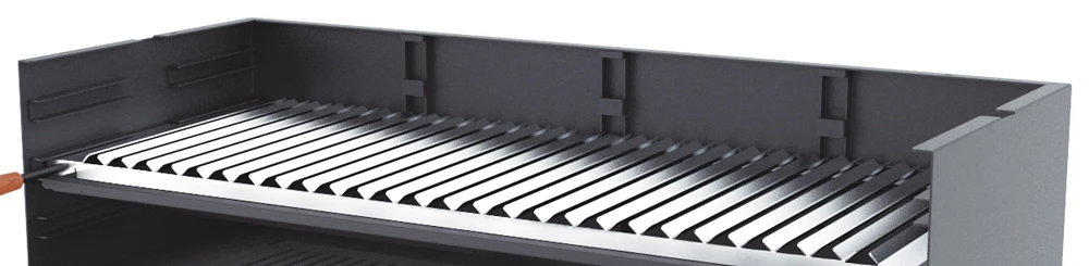 – Parrilla de Acero Inoxidable regulable a 3 alturas.