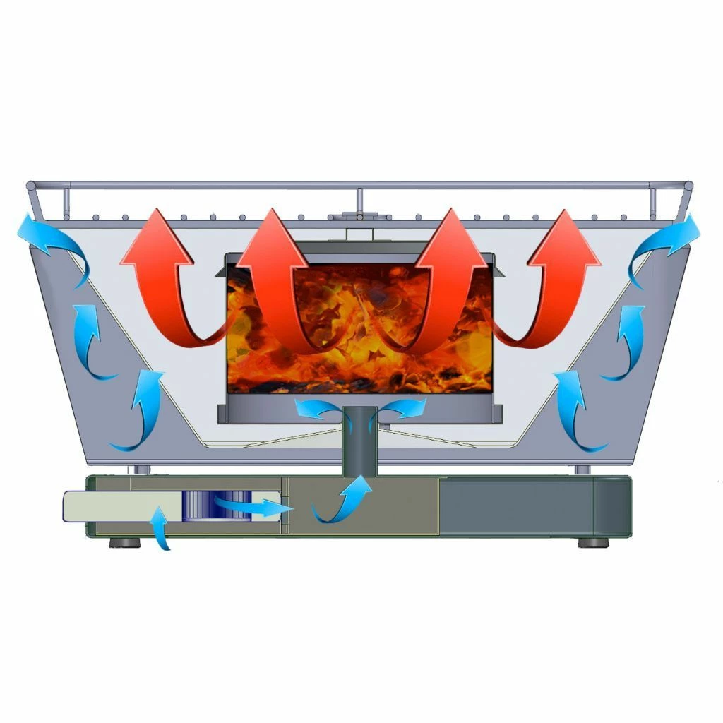 Feuerdesign solo tarda unos pocos minutos en ponerse a cocinar. El flujo de aire controlado entra directamente en la barbacoa, haciendo que esta alcance la temperatura que desees de forma casi instantánea.