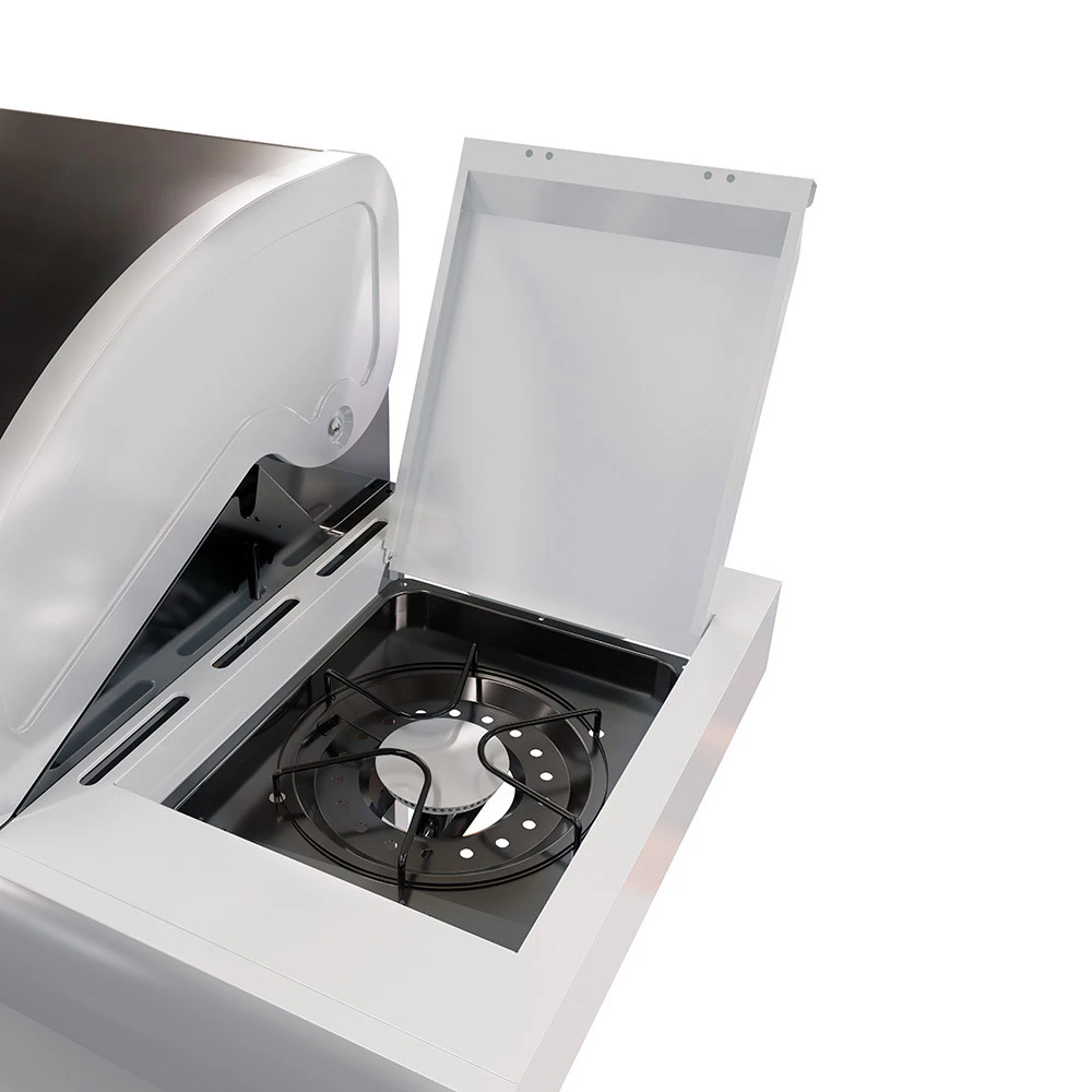 – 5 Quemadores de Acero Inoxidable + 1 Quemador Lateral. + 1 Quemador Infrarrojos trasero.