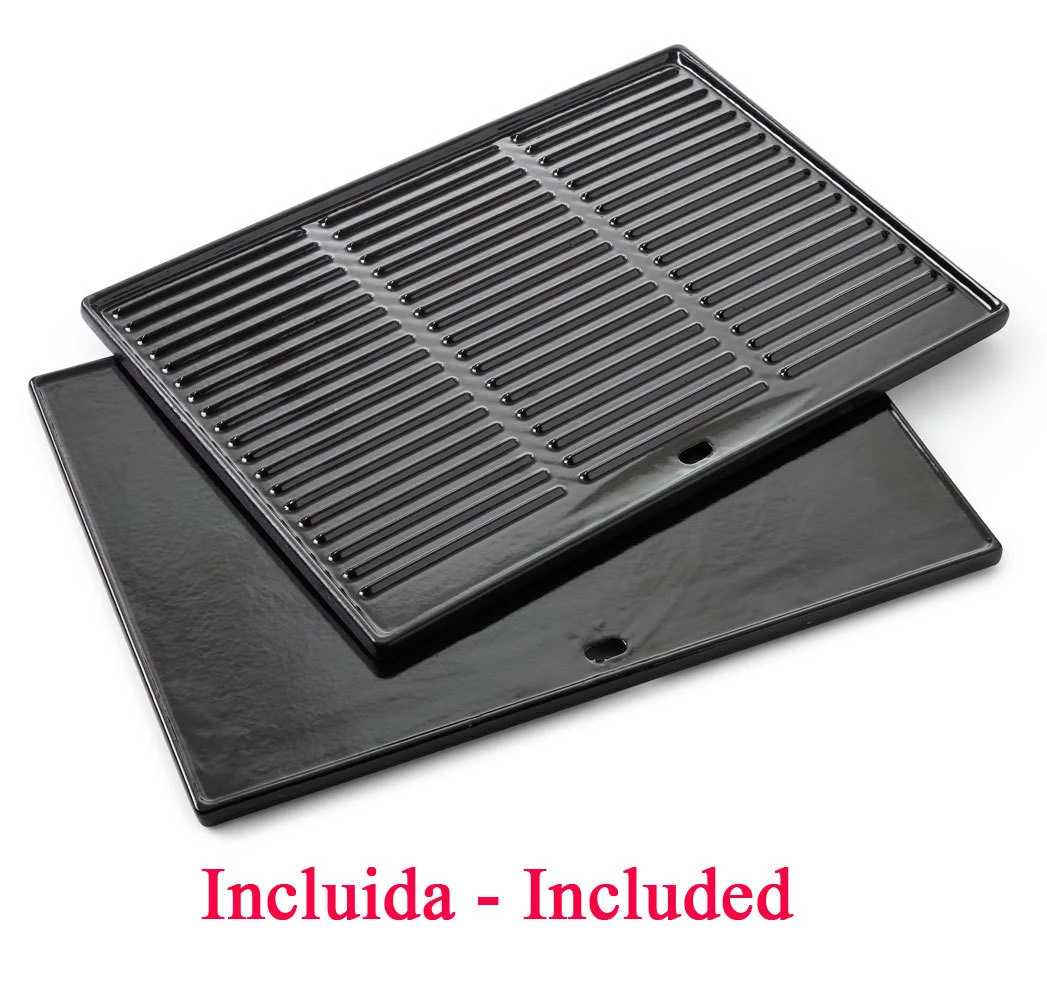 – Incluye también 1 plancha de hierro fundido reversible de 35 x 43 cm.