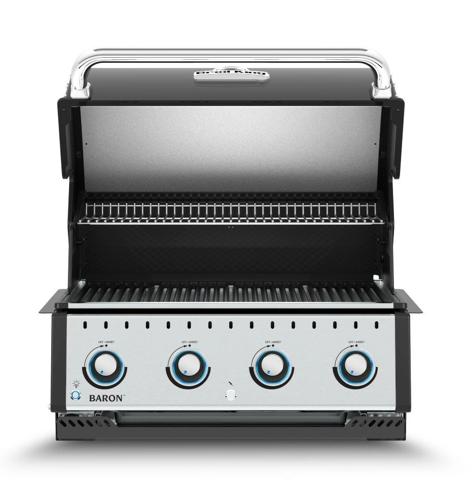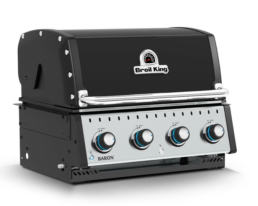 Las barbacoas Broil King de la serie Baron son fabricadas con los mejores materiales, tiene una amplia zona de cocción y son muy potentes satisfaciendo con creces nuestras necesidades. Las robustas parrillas de cocción son de hierro fundido y hacen que retengan el calor con lo que conseguiremos dorar rapidamente nuestros alimentos además son reversibles por un lado son canales huecos v y por el otro son en ^ ideal para dorar y marcar alimentos. Su amplia tapa es perfecta para utlizar nuestra barbacoa como un horno (cocción indirecta) perfecto para asar ternera, pavo, etc. Las barbacoas estan construidas con una altisima calidad y con una potencia insuperable.