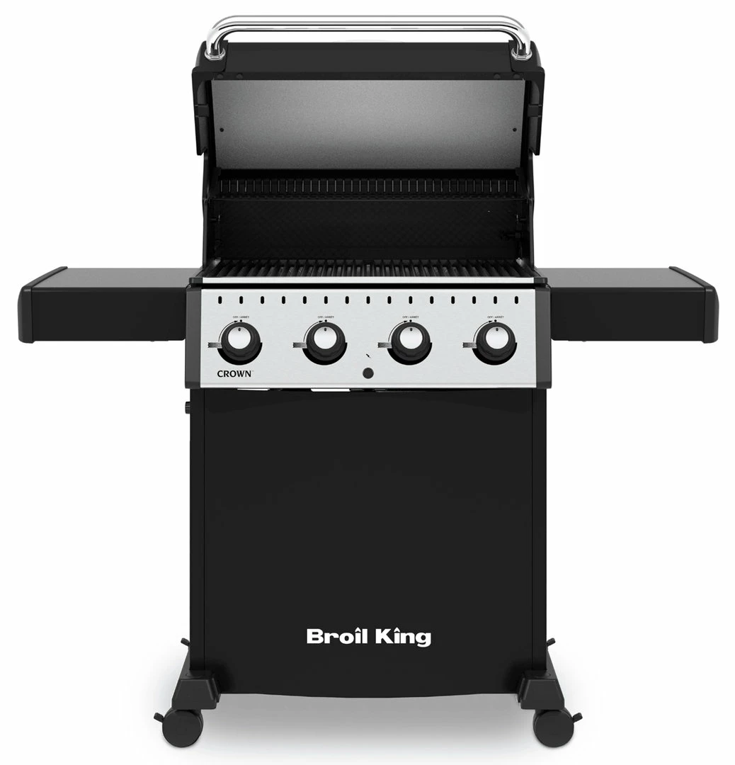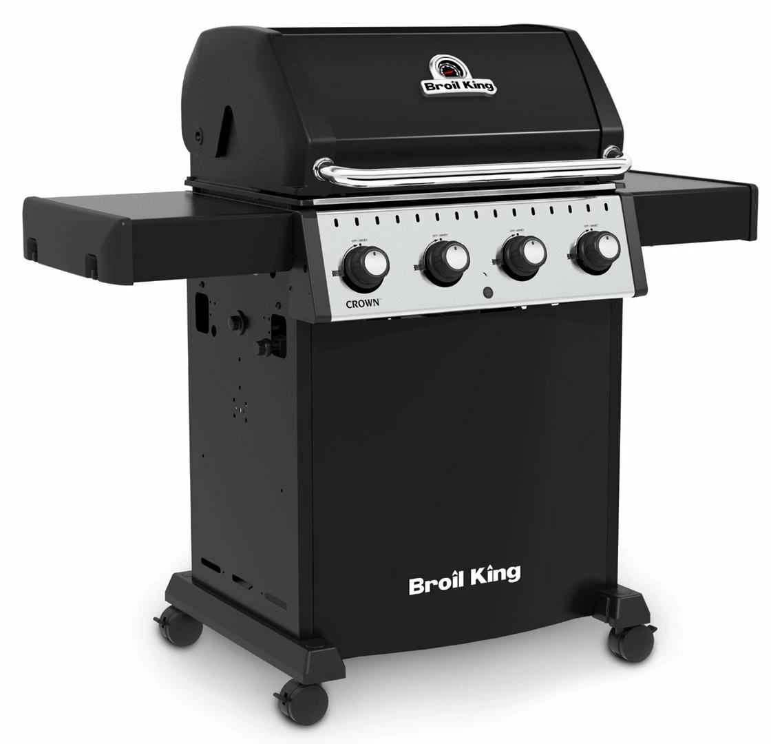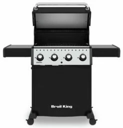 La barbacoa de gas Broil King Crown 410 ofrece un gran rendimiento y versatilidad con un aspecto contemporáneo. Las robustas parrillas de cocción son de hierro fundido y hacen que retengan el calor con lo que conseguiremos dorar rápidamente nuestros alimentos además son reversibles por un lado son canales huecos v y por el otro son en ^ ideal para dorar y marcar alimentos. Su amplia tapa es perfecta para utilizar nuestra barbacoa como un horno (cocción indirecta) perfecto para asar ternera, pavo, etc. Las barbacoas están construidas con una altísima calidad y con una potencia insuperable. La versátil barbacoa de gas Broil King Crown 410 está diseñada para darnos un gran rendimiento a un gran precio.