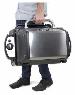 – Para su transporte, las bandejas laterales y las patas se colocan debajo de la barbacoa, la tapa se bloquea y ya podemos llevar nuestra barbacoa Broil King Porta Chef Pro como si de una maleta se tratara.