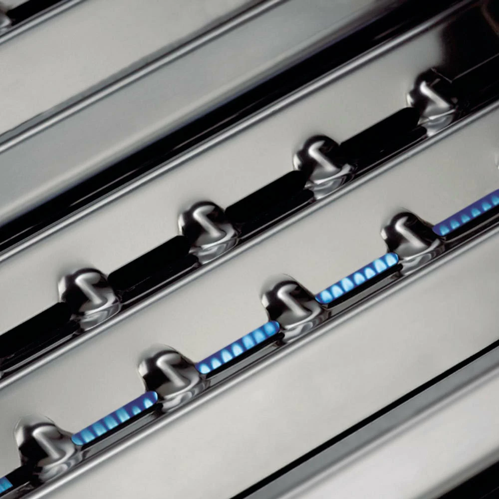 – Dual-tube™ Estos quemadores fabricados en Acero Inoxidable están diseñados para garantizarnos una llama pareja en toda la parrilla y tienen una garantía de 10 años.