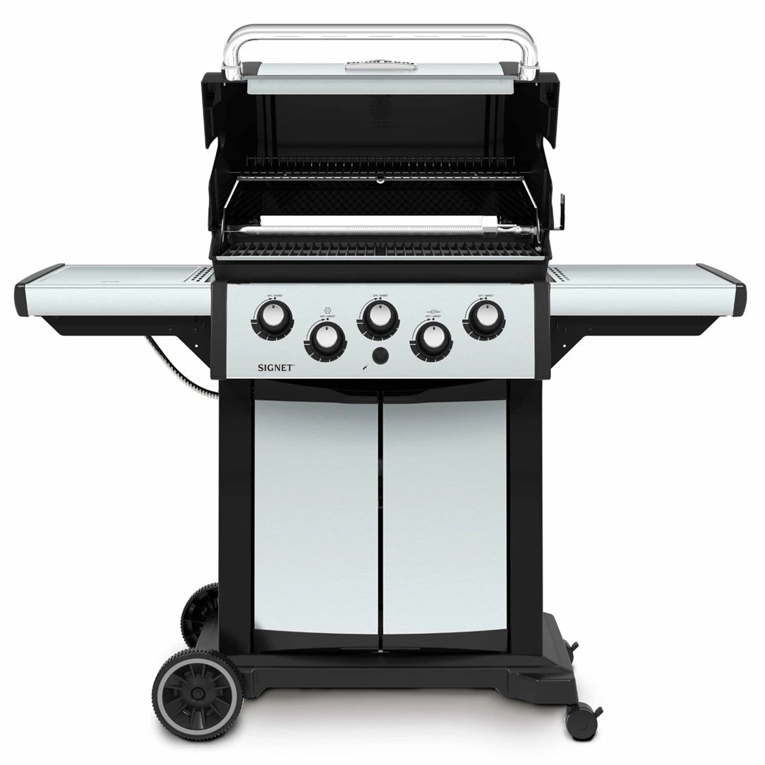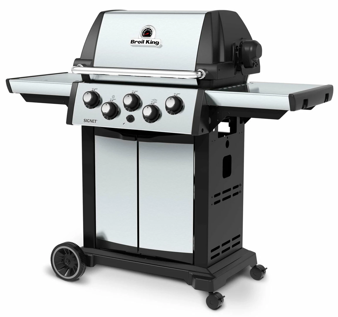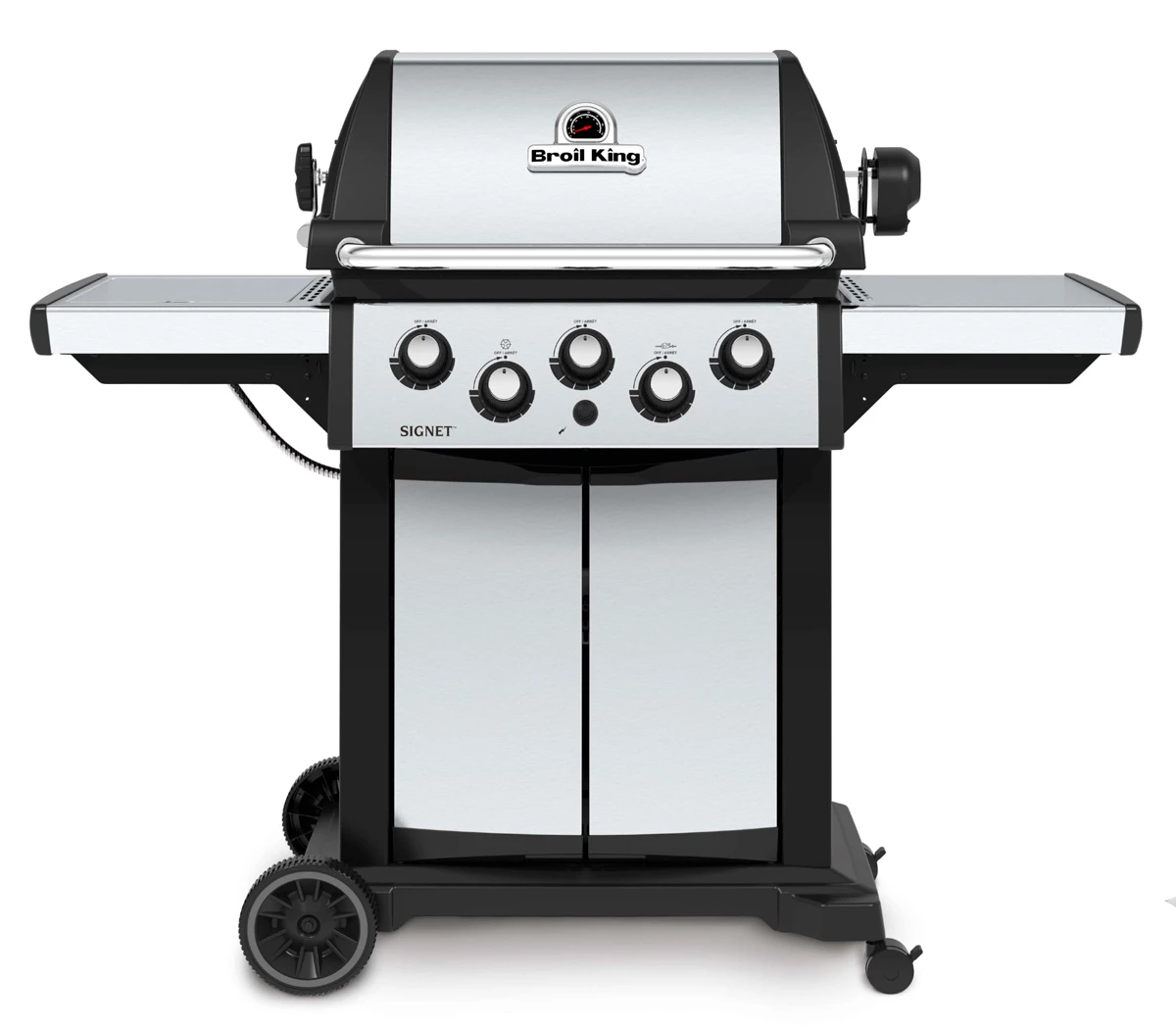 Las barbacoas Broil King de la serie Signet son de gran calidad, tiene una amplia zona de cocción y son muy potentes satisfaciendo con creces nuestras necesidades. Las robustas parrillas de cocción son de hierro fundido y hacen que retengan el calor con lo que conseguiremos dorar rápidamente nuestros alimentos además son reversibles por un lado son canales huecos v y por el otro son en ^ ideal para dorar y marcar alimentos. Su amplia tapa es perfecta para utilizar nuestra barbacoa como un horno (cocción indirecta) perfecto para asar ternera, pavo, etc. Las barbacoas están construidas con una altísima calidad y con una potencia insuperable.