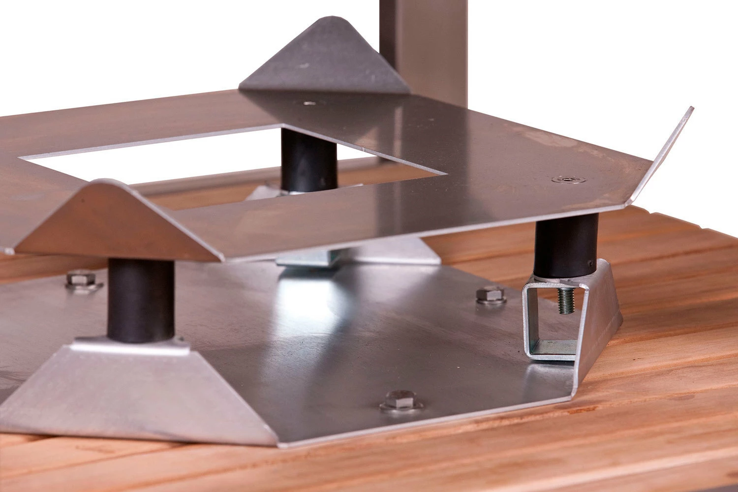 Este carro todoterreno está construido con un robusto marco de Acero Inoxidable y madera de Teka que destaca por su resistencia al exterior.