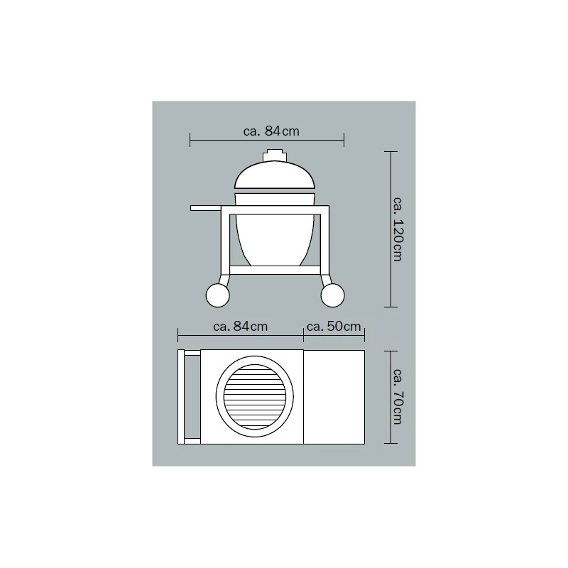 Nota: En este lote no está incluido el Kamado, las fotos que aparecen, son solo informativas para que se vean los metodos de cocción, las características y las dimensiones del Kamado. Lo que sí viene incluido es la mesa de madera de Teca con hierro galvanizado, ruedas y mesa lateral abatible.