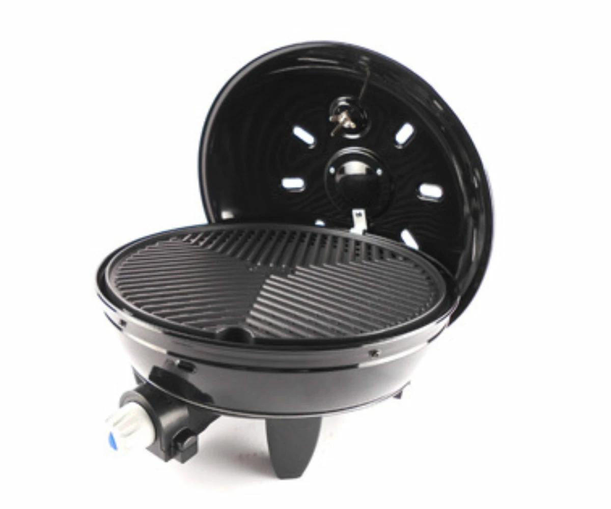 Grillo Chef es una barbacoa de gas, compacta y portátil que puede ser usado encima de una la mesa.