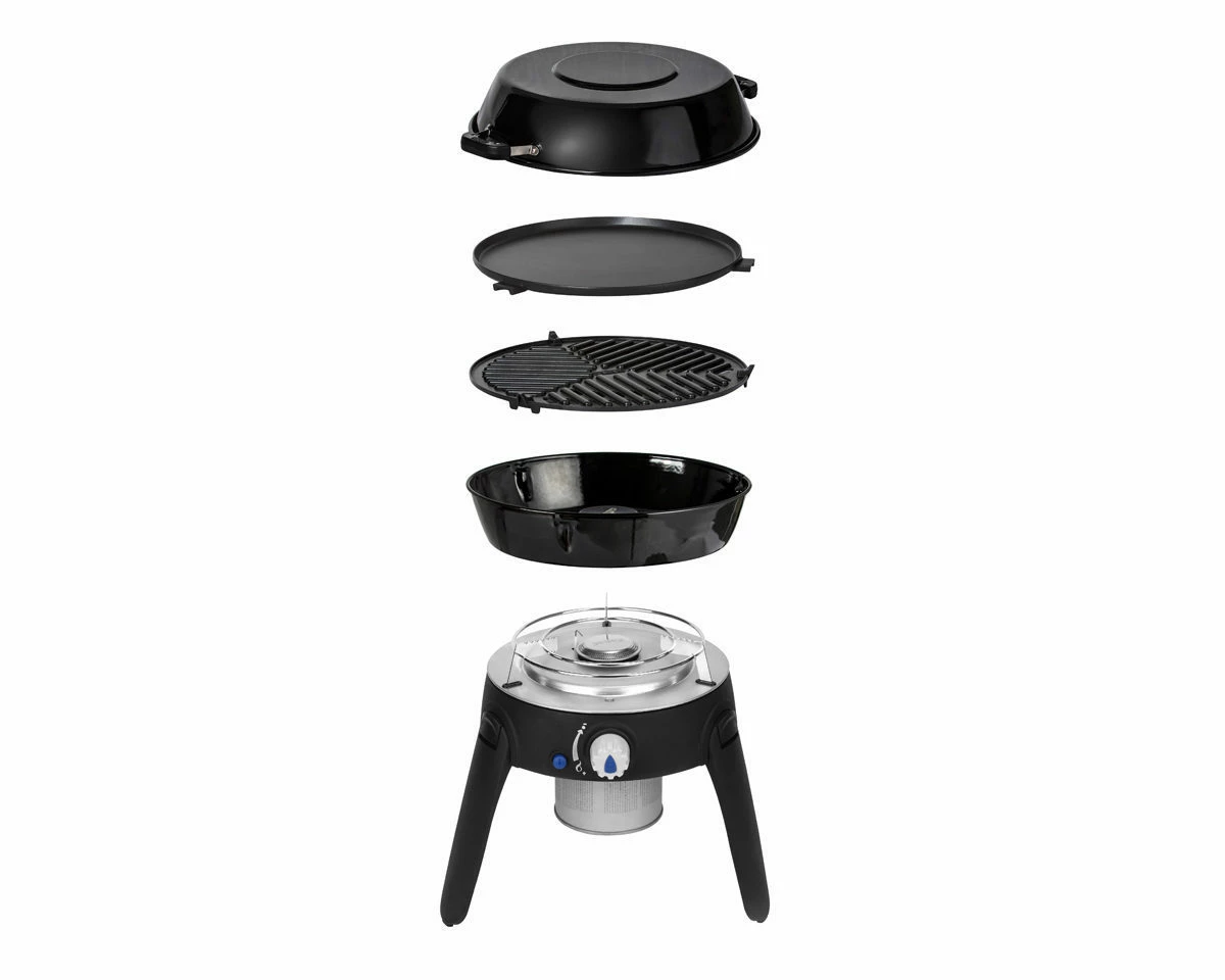 Esta barbacoa polivalente a gas transportable tan solo pesa 4 Kg. Dispone de cuatro superficies de cocinado intercambiables: soporte para cazuelas, paellas etc., una plancha & una plancha barbacoa antiadherente y una cazuela que al mismo tiempo pude utilizarse como tapa.