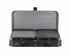 No dejes que su tamaño le engañe, la Cocina 2 Cook 2 Pro Deluxe no conoce límites. Es perfecta para cocinar para 6 personas. Esta versátil cocina / barbacoa viene con dos soportes para ollas, una plancha lisa y una plancha rugosa. Incluye una práctica bolsa de transporte para facilitar su transporte y almacenamiento, por lo que es ideal para cualquier actividad al aire libre.