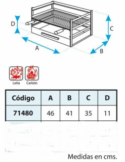 – Medida de la parrilla: 43,5 x 41 cm.
