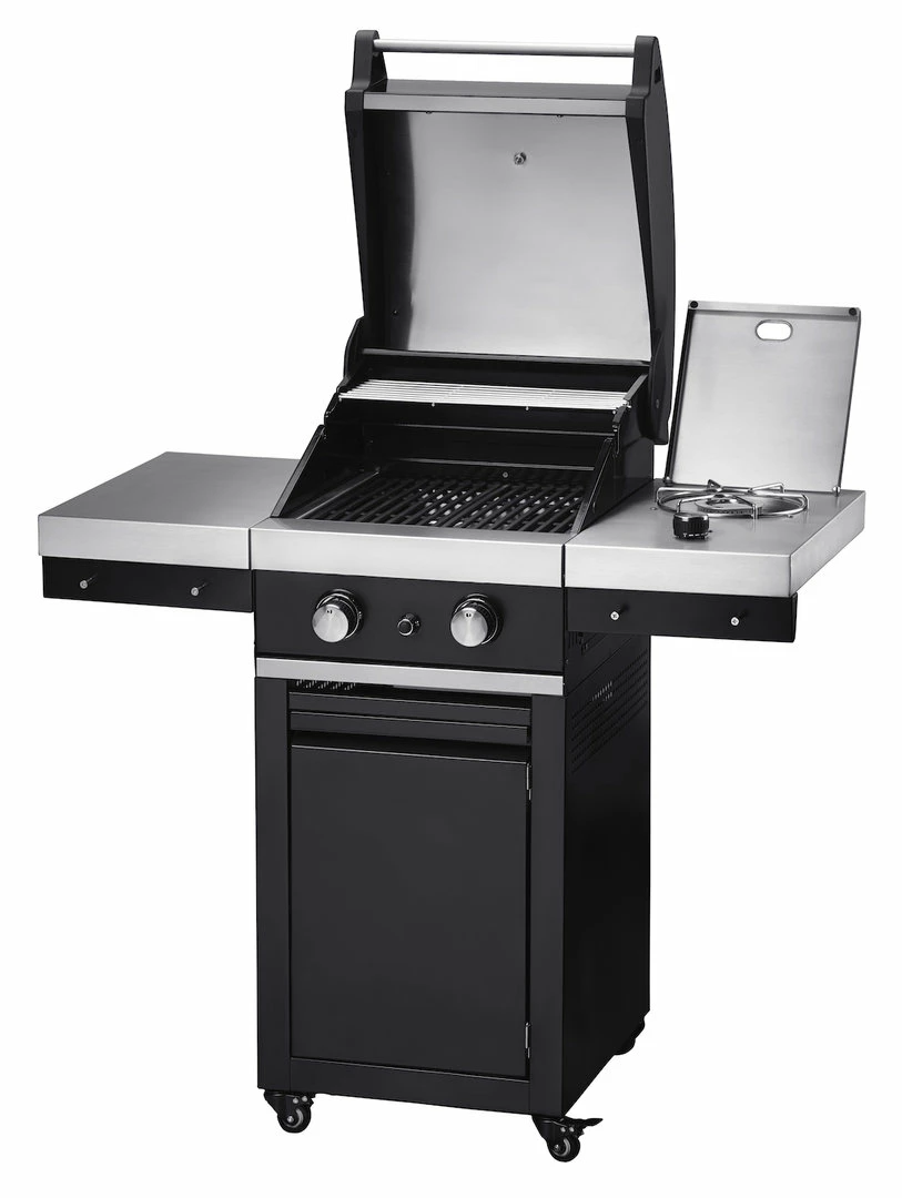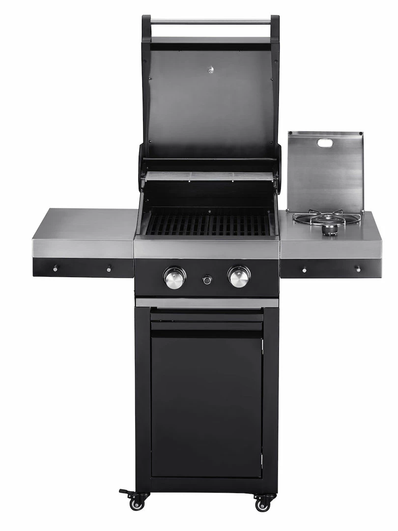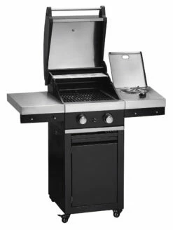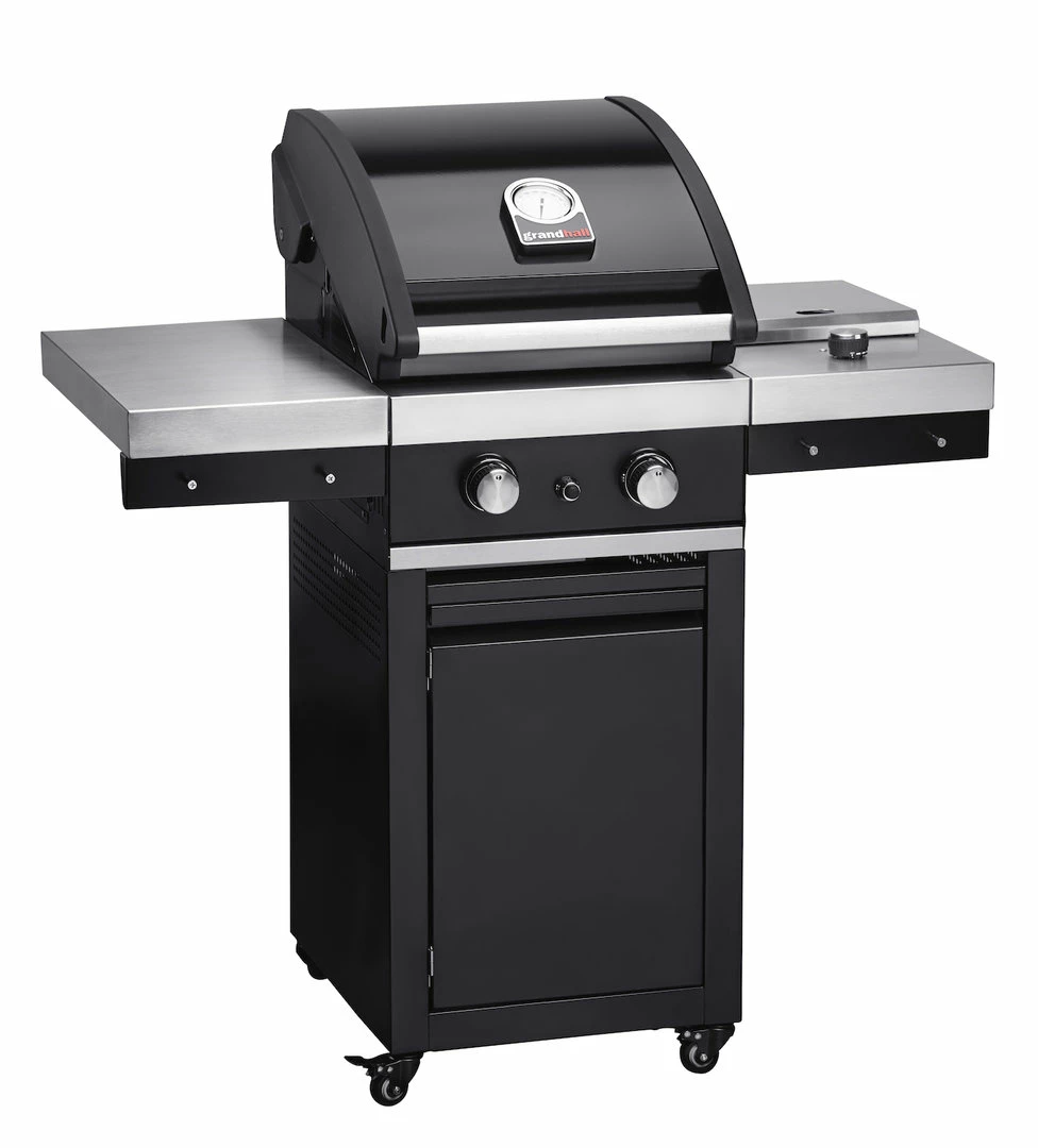 La barbacoa Grandhall G2 con carro es perfecta para los amantes de la buena mesa. Con su excelente construcción, diseño elegante, y buenísima relación calidad/precio, esta barbacoa nos quedara fantástica en cualquier zona de nuestra terraza o jardín. Con un solo toque de un botón, los quemadores se encienden y alcanzarán la temperatura de cocción en cuestión de minutos. Gracias al termómetro que integra en el tapa, usted podrá conseguir las temperaturas perfectas cuando utilice su barbacoa en la función horno para realizar asados, rustideras, pizzas, pescados al horno, etc.
