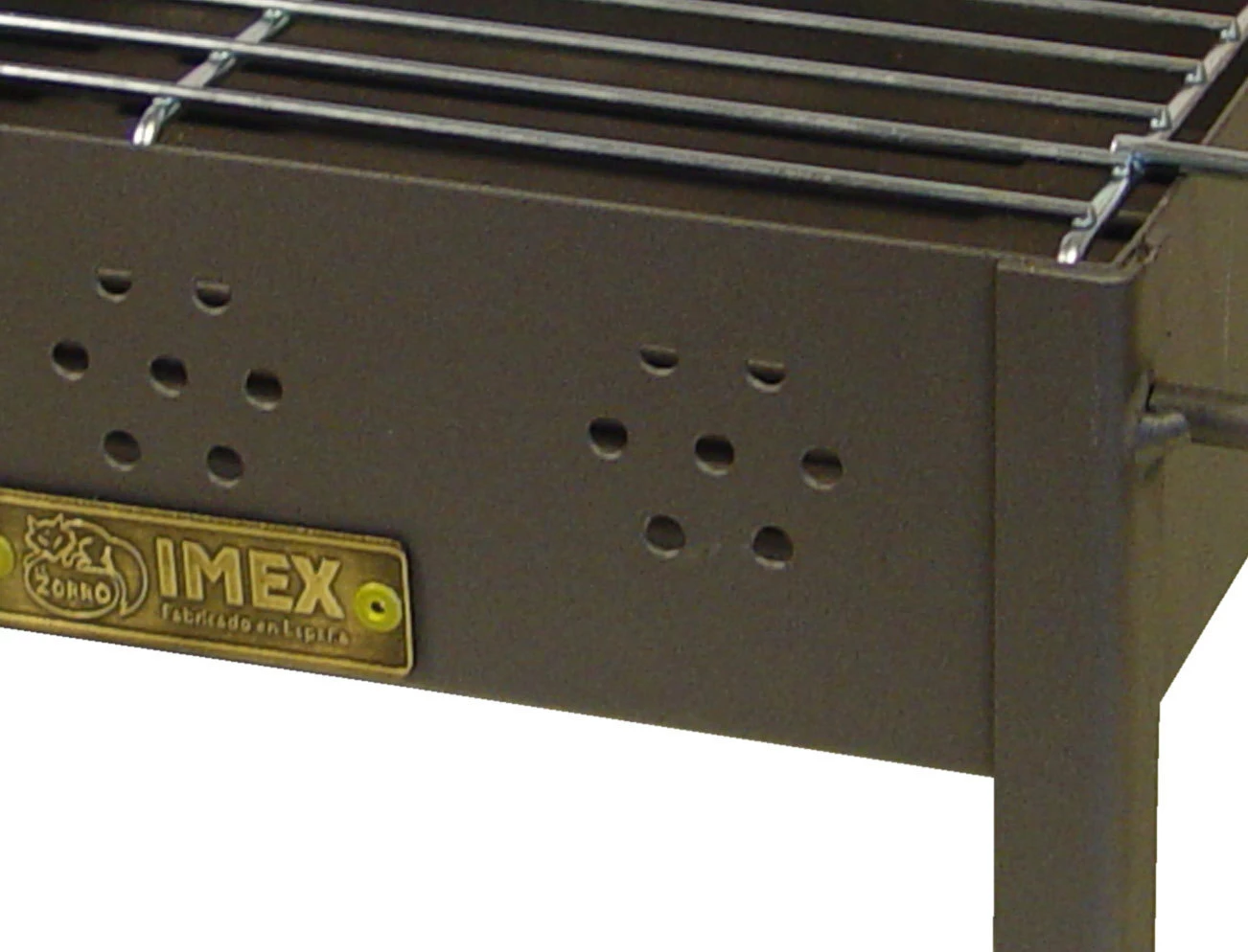 Se compone de un cuerpo construido en hierro forjado con pintura resistente al fuego hasta los 800 ºC y una parrilla de cocción cincada. La parrilla dispone de dos asas para poder retirarla muy fácilmente y acceder al combustible, igualmente el cuerpo también tiene mangos para transportarlo cómodamente.