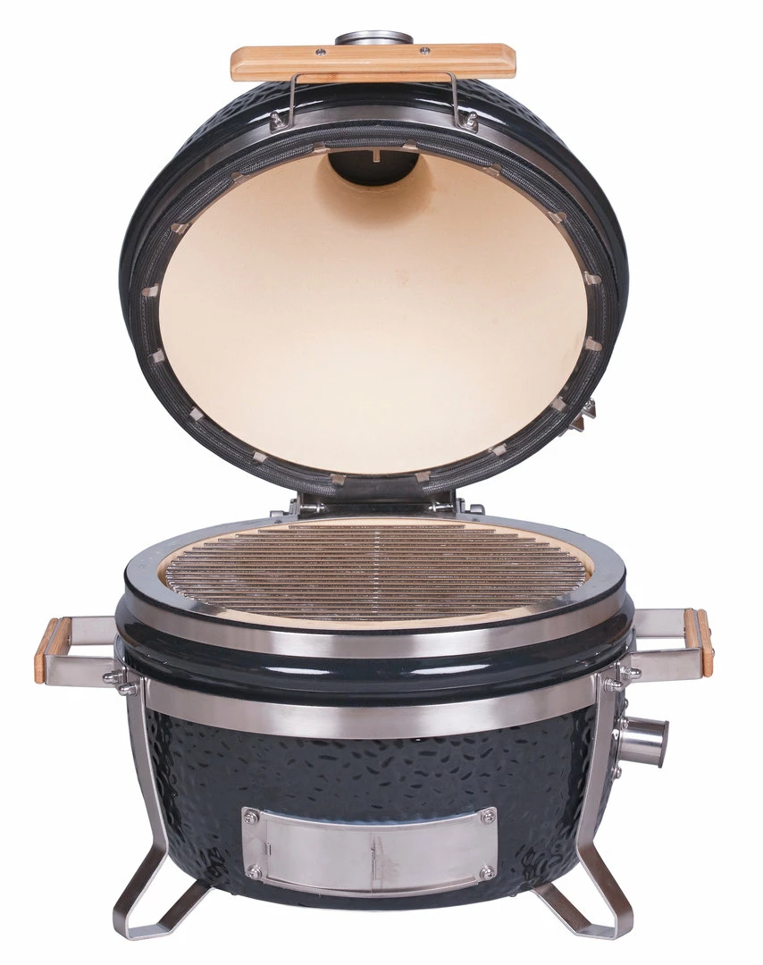 Es un Kamado más pequeño que el modelo Junior por 10 cm de altura. Se diferencia del modelo Junior también por el marco/estructura de Acero extraíble sobre la que se puede colocar.