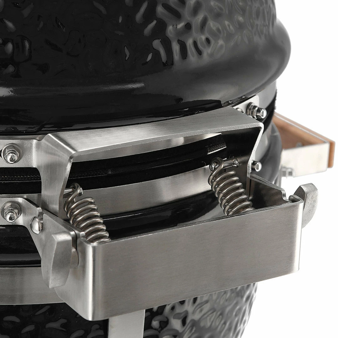 – Todas las Kamado Monolith están equipadas con una junta de acero inoxidable y fibra de vidrio con bandas metálicas de alta calidad.