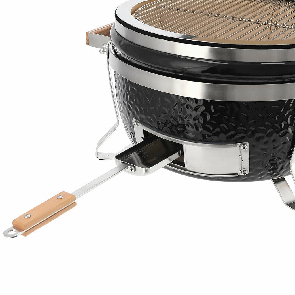 – Estructura de metal con cesto de fácil acceso y sistema de limpieza integrado para la recolección de cenizas y otros residuos generados durante el cocinado. *Asegúrese al insertar la estructura de metal con los segmentos cerámicos de que la abertura de extracción de cenizas esté alineada correctamente con la entrada de aire. Podrá encontrar esta información en el manual que se suministra con el Kamado.