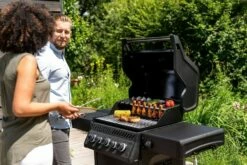 La barbacoa de gas Phantom Rogue 425 de Napoleon en color negro, es una barbacoa de gas de primera calidad con un precio asequible. Cuenta con tres quemadores que se encienden siempre con el encendido Jetfire sin necesidad de pilas, un quemador lateral cerámico infrarrojo y un quemador trasero infrarrojo. Esta barbacoa cuenta con un control preciso de la temperatura, con parrillas de cocción de Acero Inoxidable y protectores de llama de Acero Inoxidable para un calentamiento uniforme y para mantener la barbacoa limpia. El elegante exterior negro es muy duradero y fácil de limpiar.