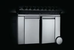 Las luces halógenas interiores iluminan la superficie de cocción para asar por la noche.