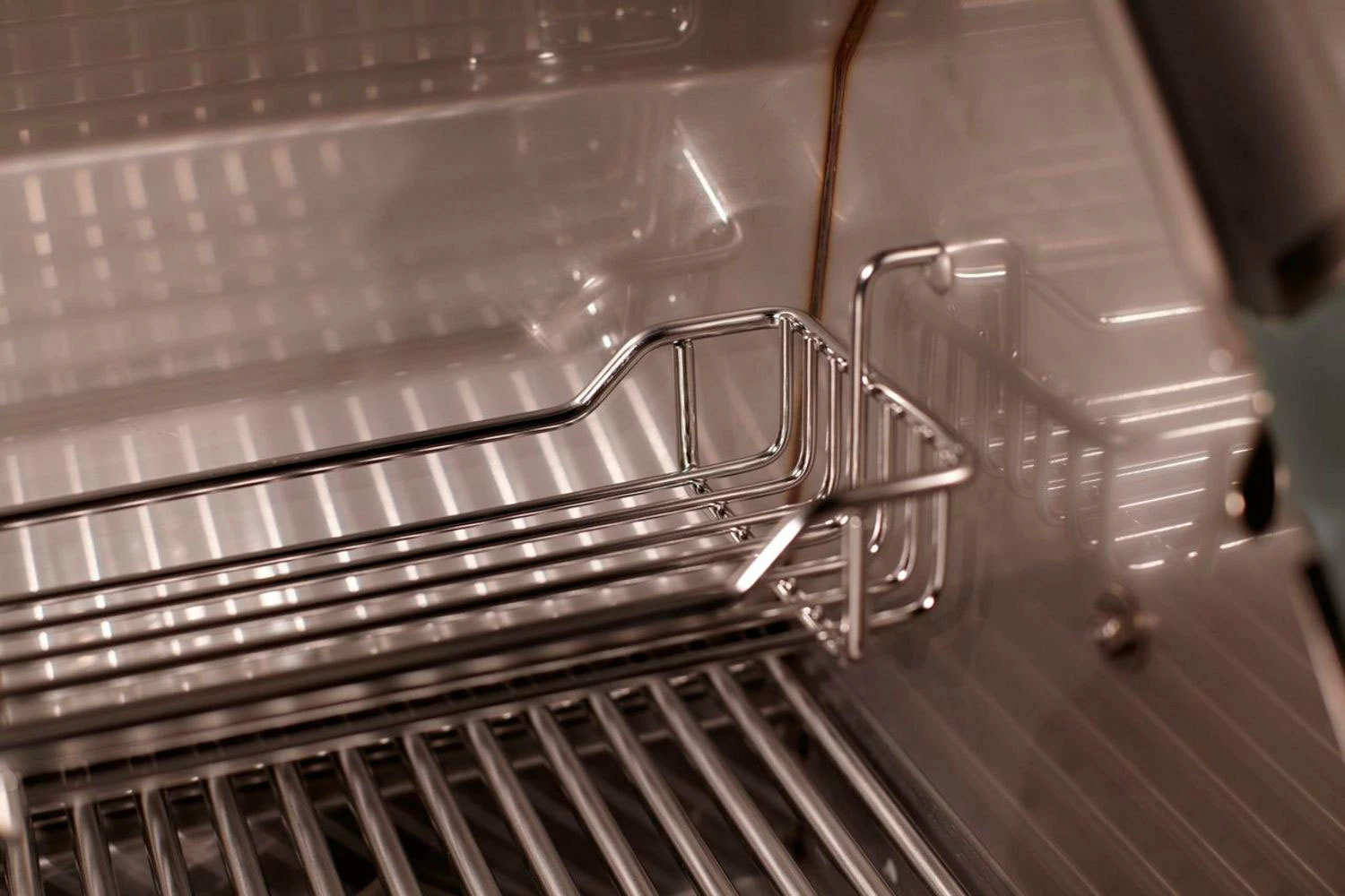 – Sistema de apertura de tapa LIFT EASE, con este sistema de apertura, usted puede pegar la barbacoa a la pared que al abrir la tapa no chocará contra la pared.