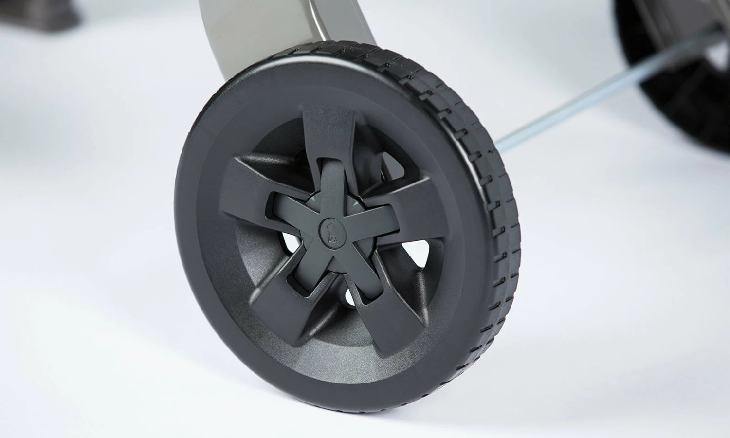 Ruedas: Robustas y resistentes a todo tipo de condiciones meteorológicas, para mantener la movilidad de la barbacoa. El mecanismo de cierre bloquea la barbacoa en una posición estable.