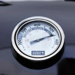 La tapa incorpora un termómetro grande y resistente que permite controlar fácilmente la temperatura de la barbacoa.