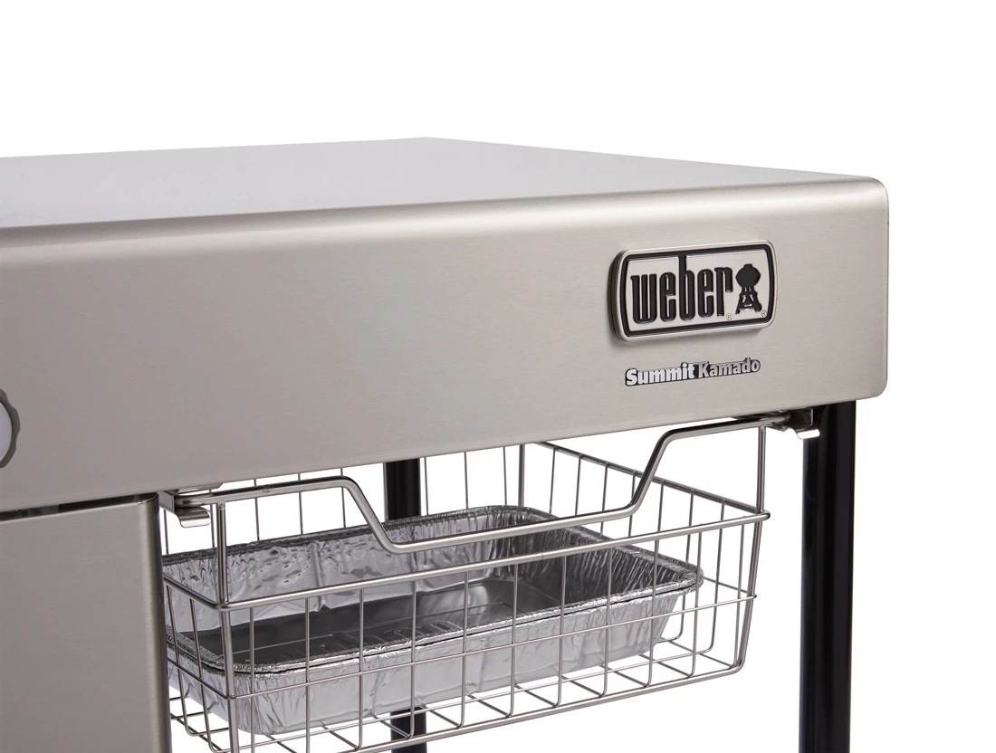 La cesta extraíble de Acero Inoxidable es de gran utilidad para guardar accesorios y utensilios de barbacoa. Se encuentra debajo de la mesa de Acero Inoxidable para poder acceder a ella fácilmente mientras se cocina.
