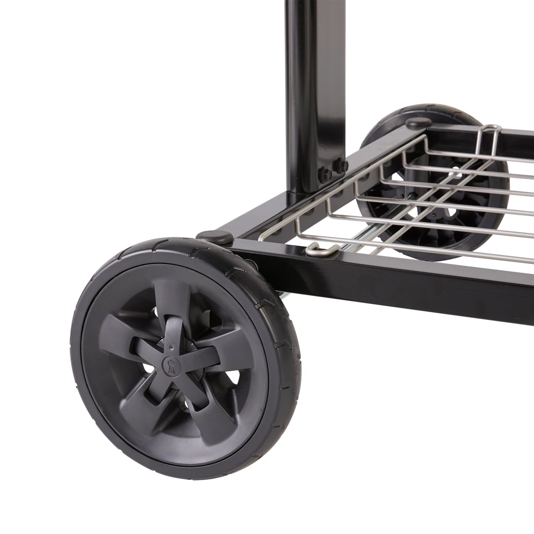 Las ruedas facilitan mover la barbacoa por el exterior y el mecanismo de bloqueo mantiene la barbacoa en su sitio.